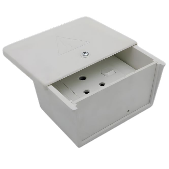 SURFACE MOUNT PVC 4X2 WEATHERPROOF PLUG BOX WITH SLIDING LID HEIGHT = 161MM WIDTH = 154MM DEPTH = 76MM WORKS WITH STANDARD 4X2 SOCKETS SOCKET NOT INCLUDED.
