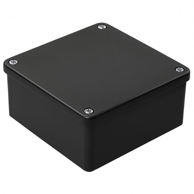 SURFACE MOUNT BLACK ABS JUNCTION FIXED LID BOX HEIGHT = 120MM WIDTH = 120MM DEPTH = 58MM