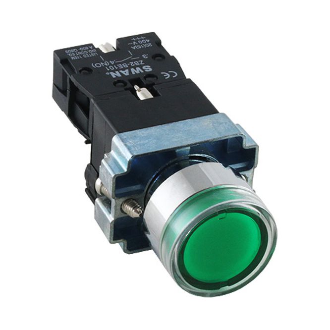 22mm PUSH BUTTON ILLUMINATED GREEN 220VAC NO