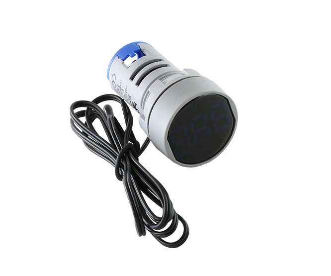 22mm PANEL MOUNT TEMPERATURE INDICATOR. ROUND PANEL MOUNT AND BLUE DISPLAY