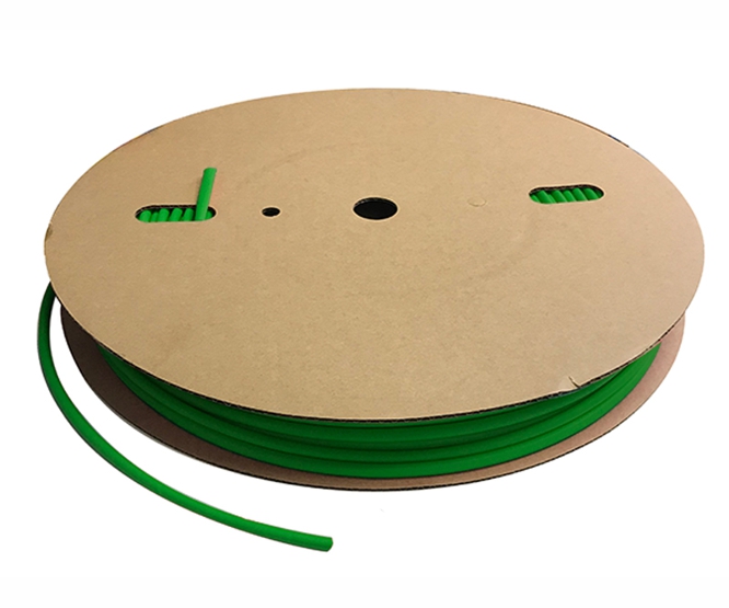 HEAT SHRINK SLEEVING 600V GREEN. UNSHRUNK DIA=50mm, SHRINK RATIO 2:1, PRICED PER REEL=25m