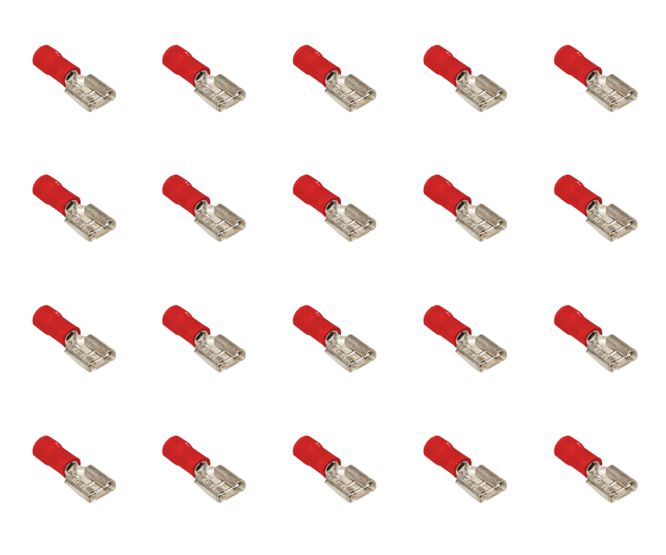 PRE-INSULATED RED FEMALE CRIMP TERMINAL, 0.5-1.5mm2 WIRE.