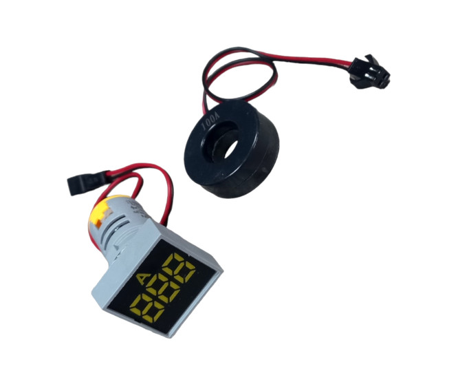 DIGITAL AMMETER PILOT LIGHT, PANEL MOUNT, 22MM HOLE, INDICATOR LED SQUARE SIGNAL LIGHT SPLITTER WITH COLOR YELLOW. RATED FROM 0 - 100A