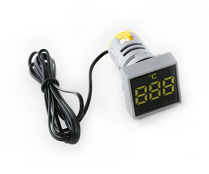 22mm PANEL MOUNT TEMPERATURE INDICATOR. SQUARE PANEL MOUNT AND YELLOW DISPLAY